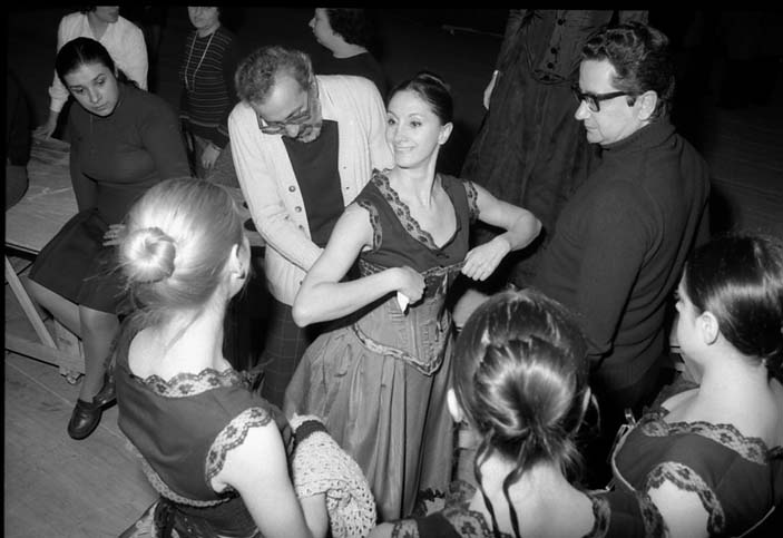 Franca Desinio prova i costumi con il regista Pier Luigi Pizzi e il coreografo Giuseppe Urbani